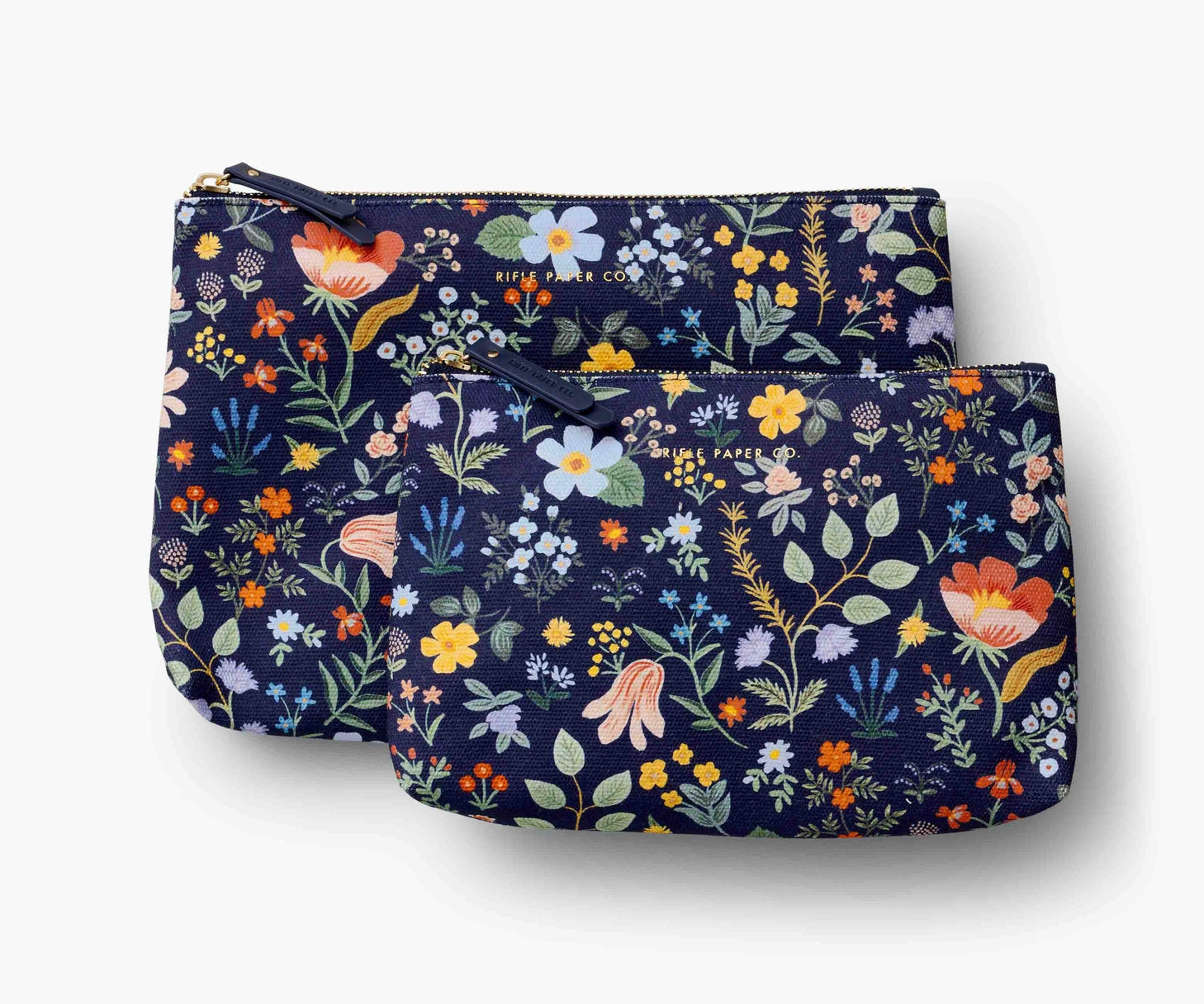 A set of two cotton canvas pouches featuring our timeless Bramble Fields floral. The pouches are spacious and lightweight, great for travel, organization, or tossing in your everyday bag.