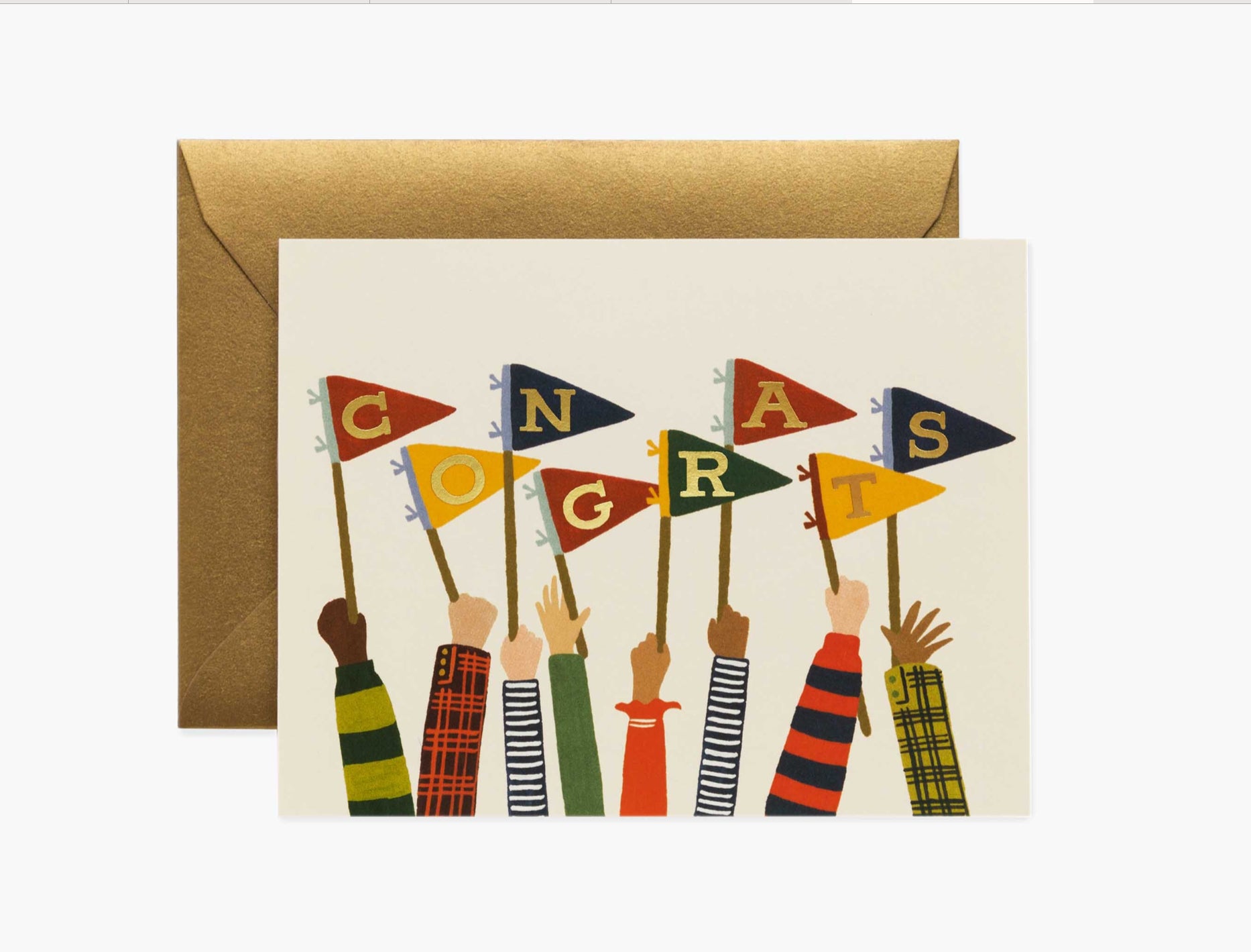 Accompanied by a gold metallic envelope.
