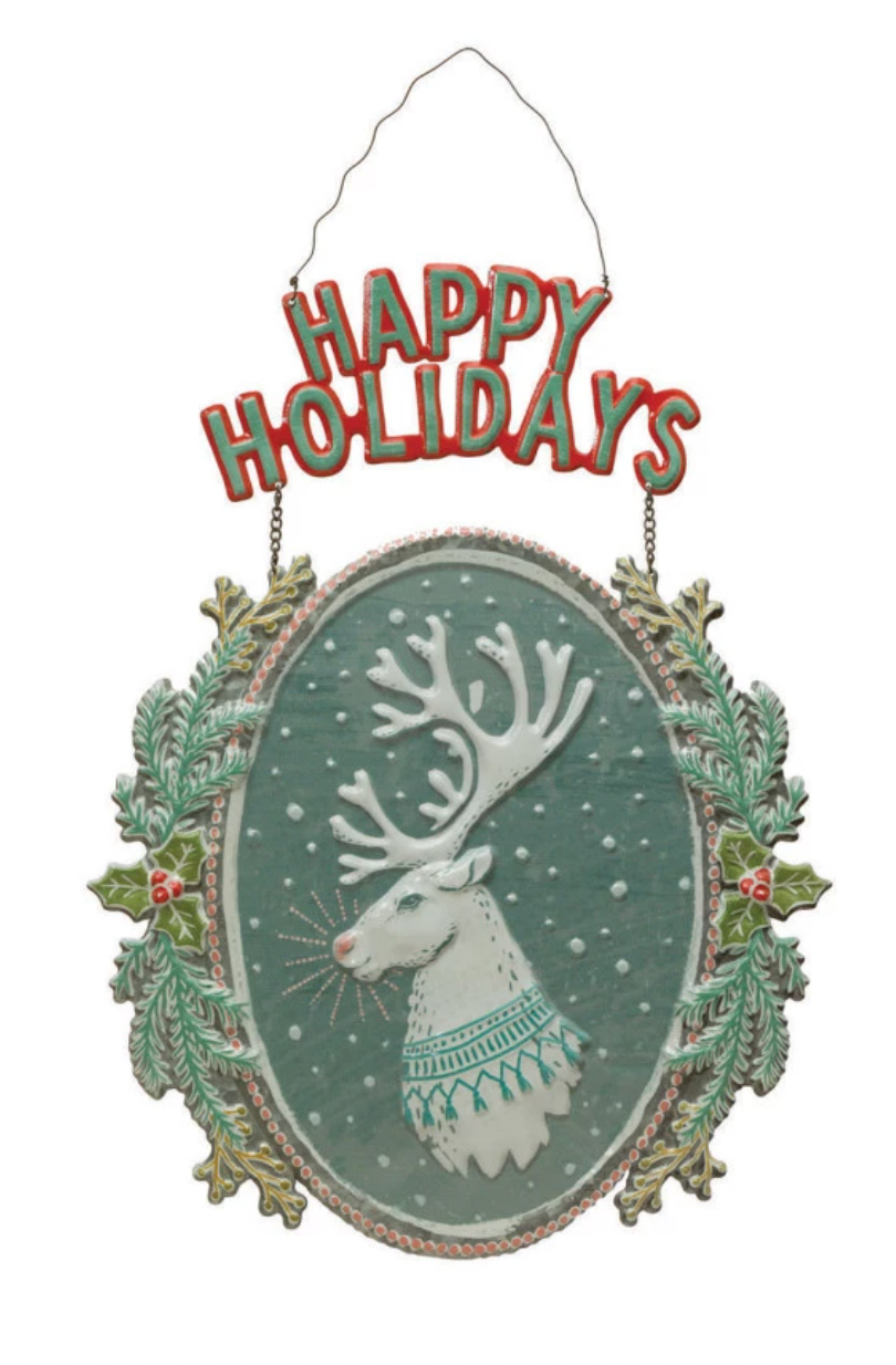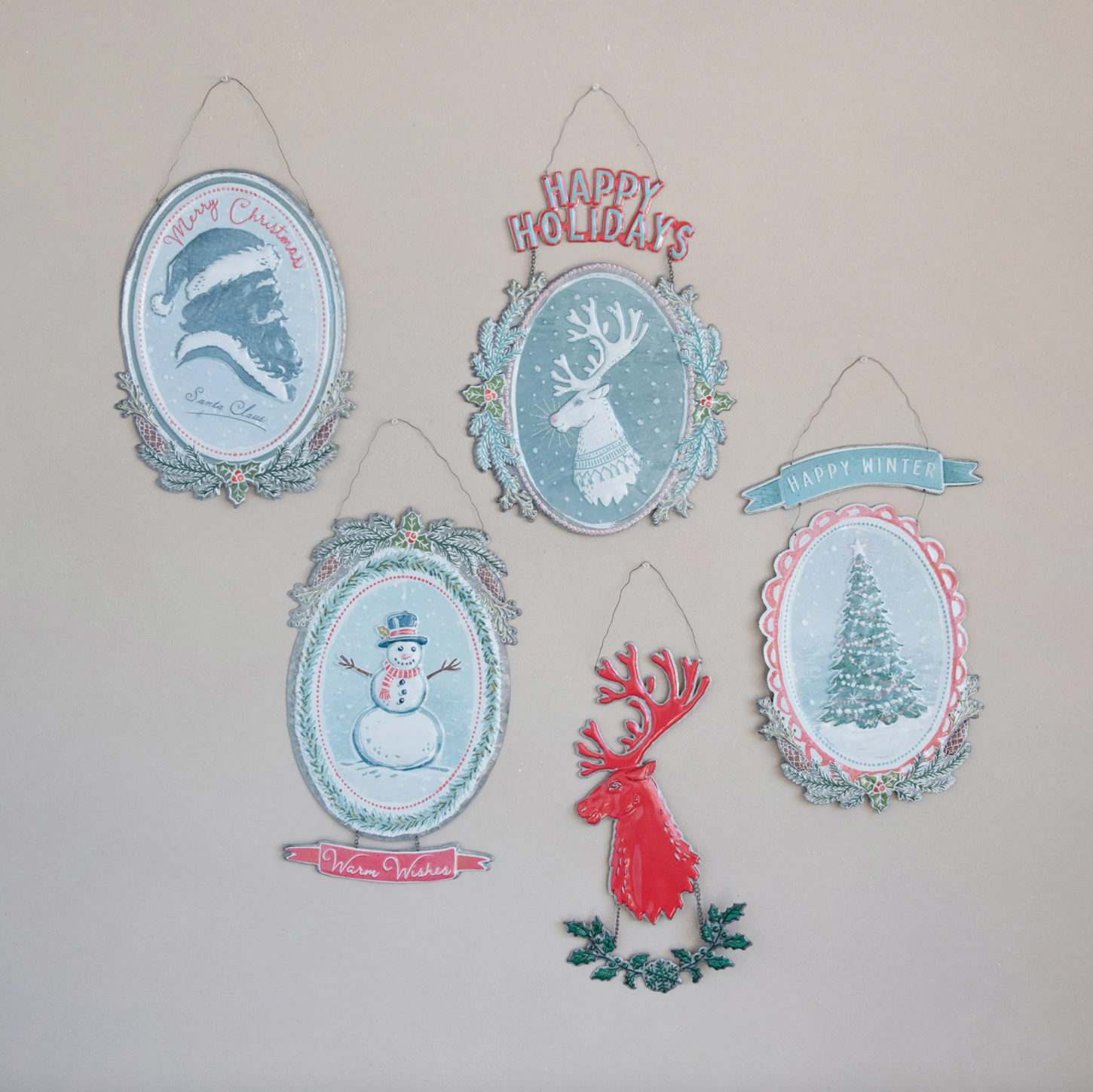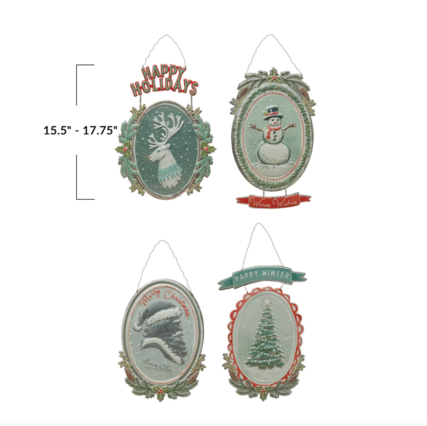 15-1/2"H - 17-3/4"H Embossed Metal Wall Decor w/ Holiday Image & Saying, 4 Styles