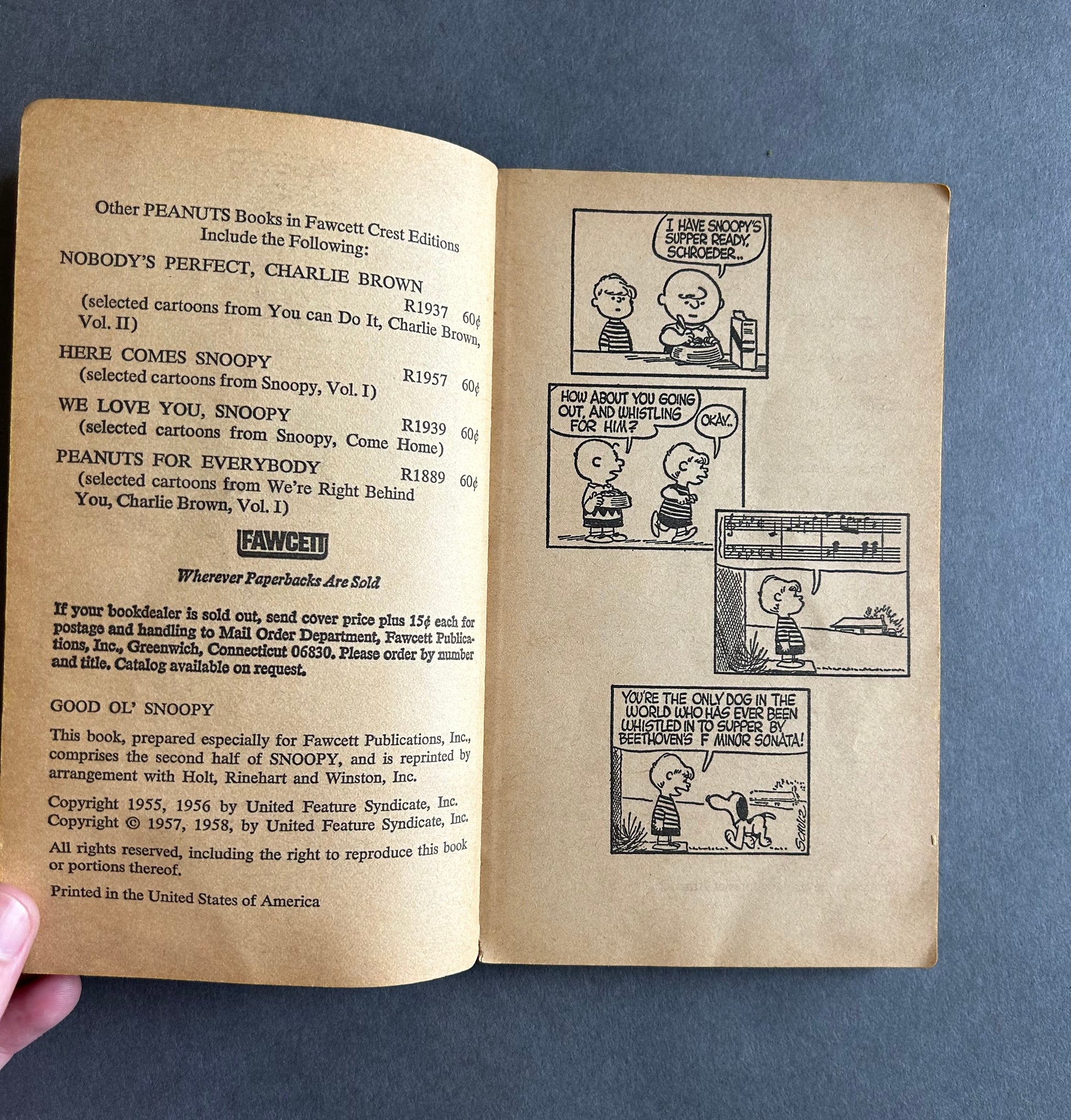 Printed in 1958 by Fawcett Crest. This book contains Selected Peanuts cartoons from SNOONPY VOL.II. Slight wear and tear with lots of life left