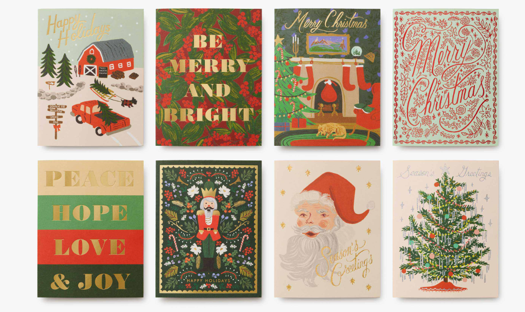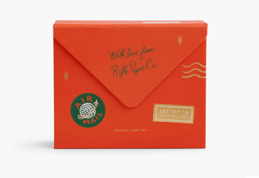 Our Holiday Wishes essentials card box includes an assorted set of 16 A2 greeting cards for the holiday season. The box features Letters to Santa artwork with gold foil accents with a magnetic closure. When you're finished with these cards, refill your box with any of our other A2 cards to always have a greeting on hand.