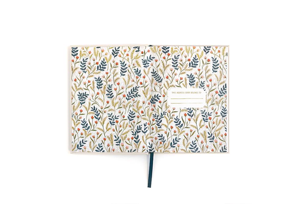Features | Space for 328 contacts, linen wrapped hard cover, ribbon bookmark.