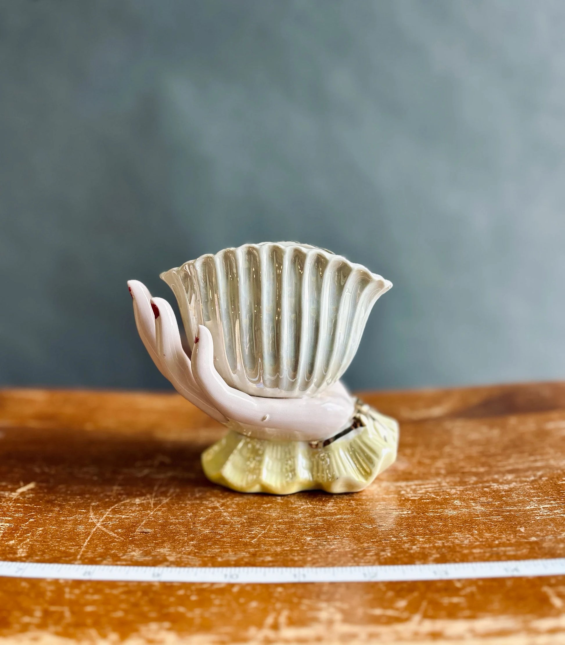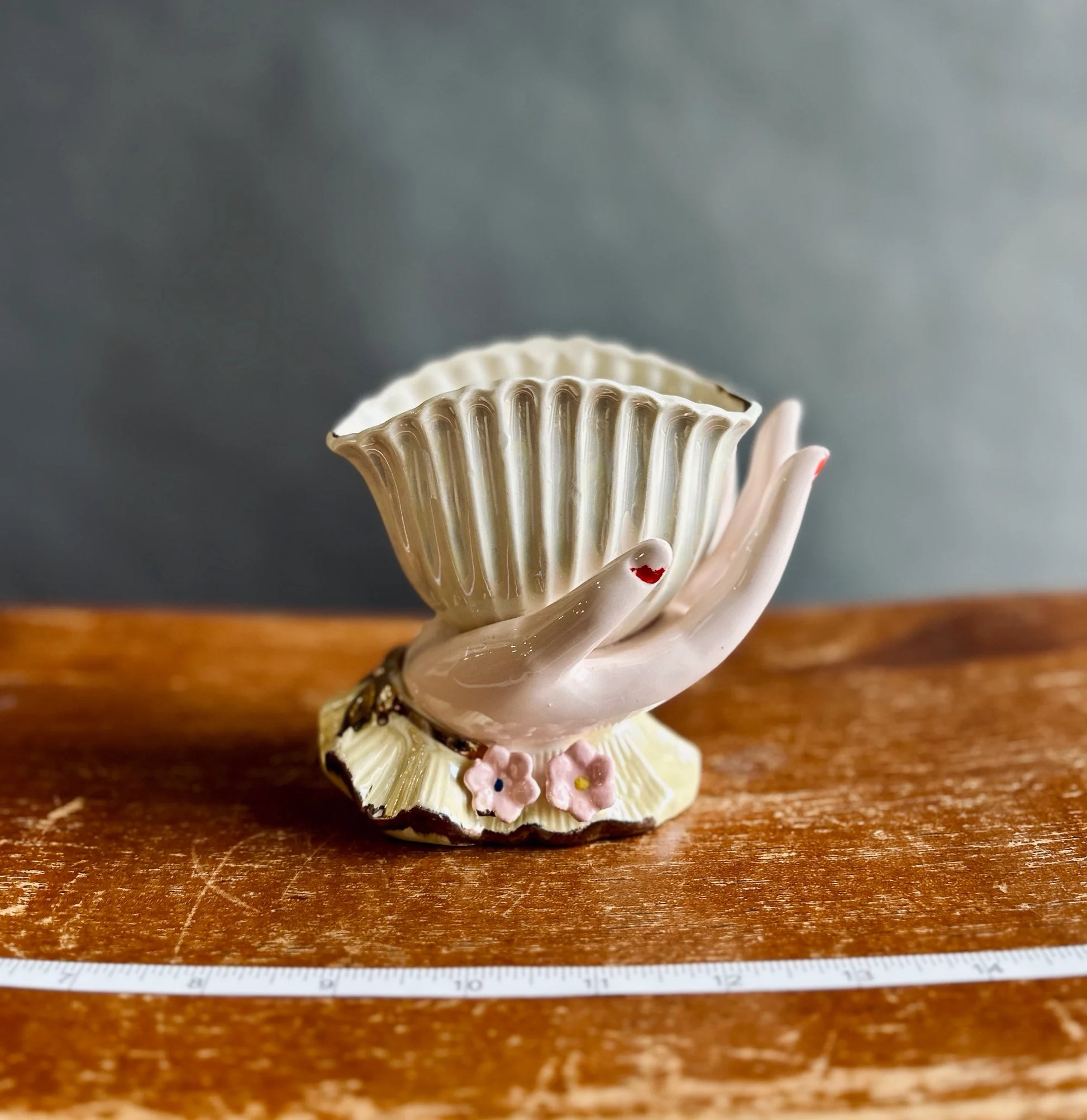 Unique and delicate vase held by a single hand. Adorable for air plants, jewelry, palo santo sticks, your weed? The possibilities are endless really