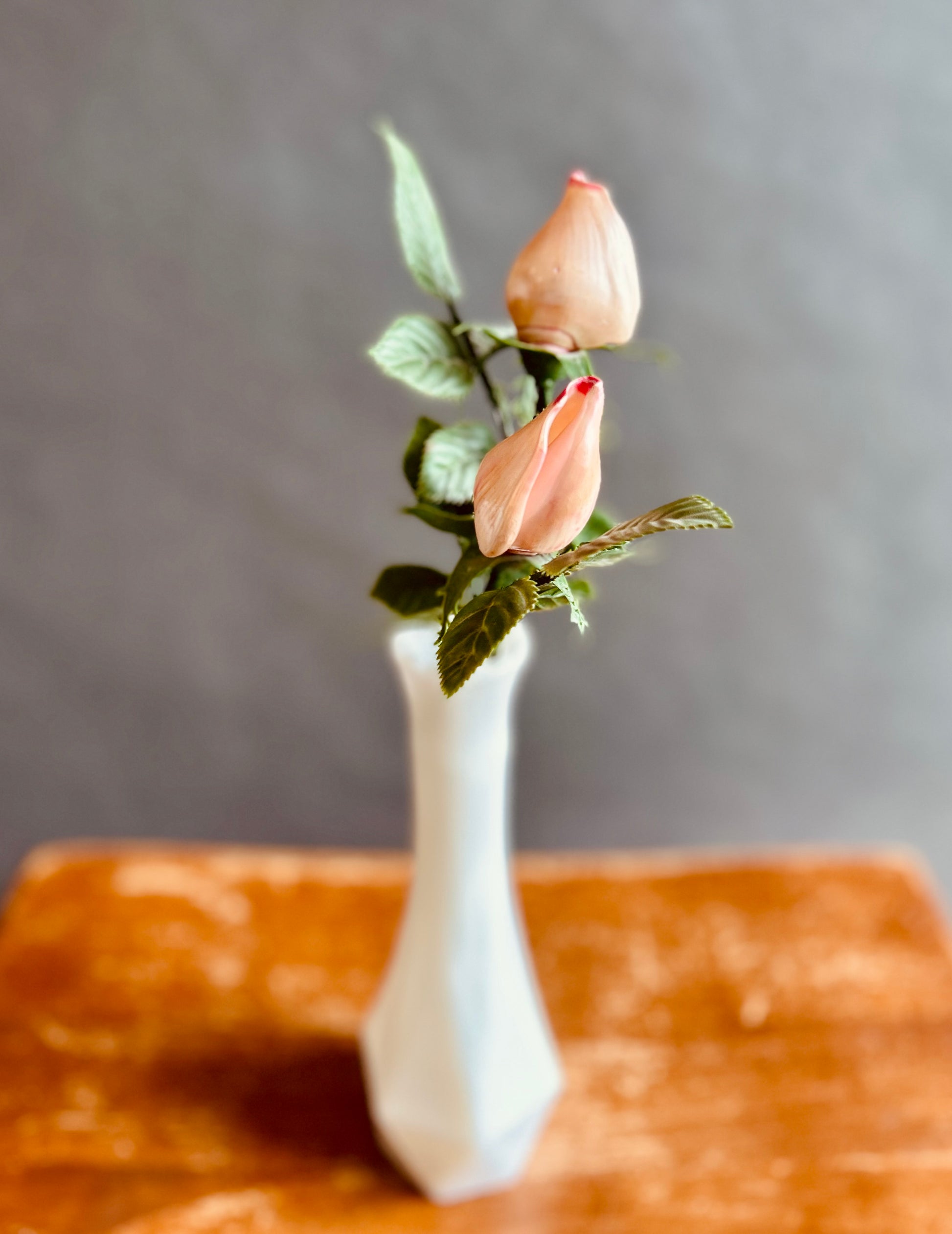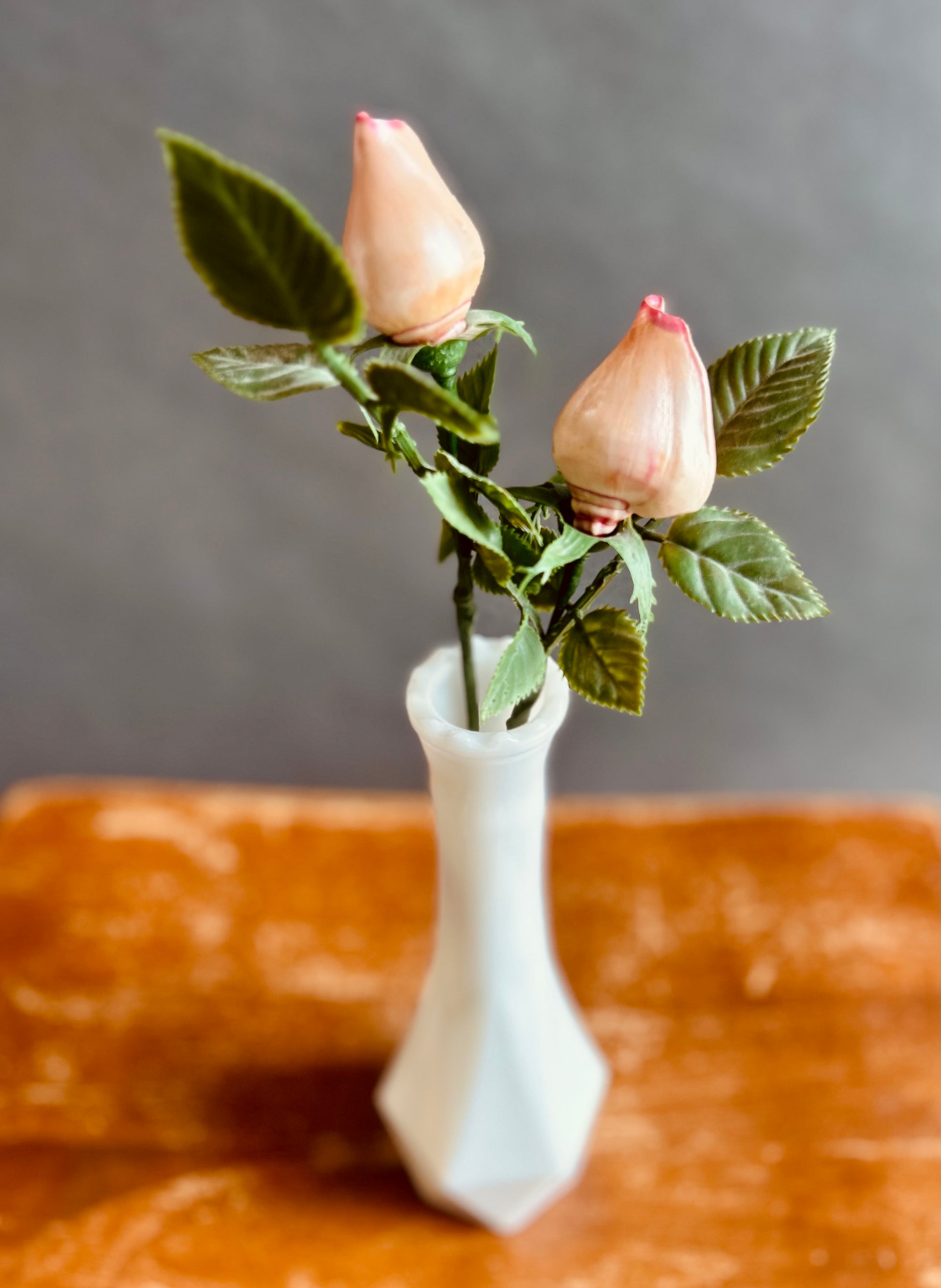 Two faux steamed seashell roses, each shell measuring at 2”. Seashells seem naturally a pearlescent pink. *Very pretty*