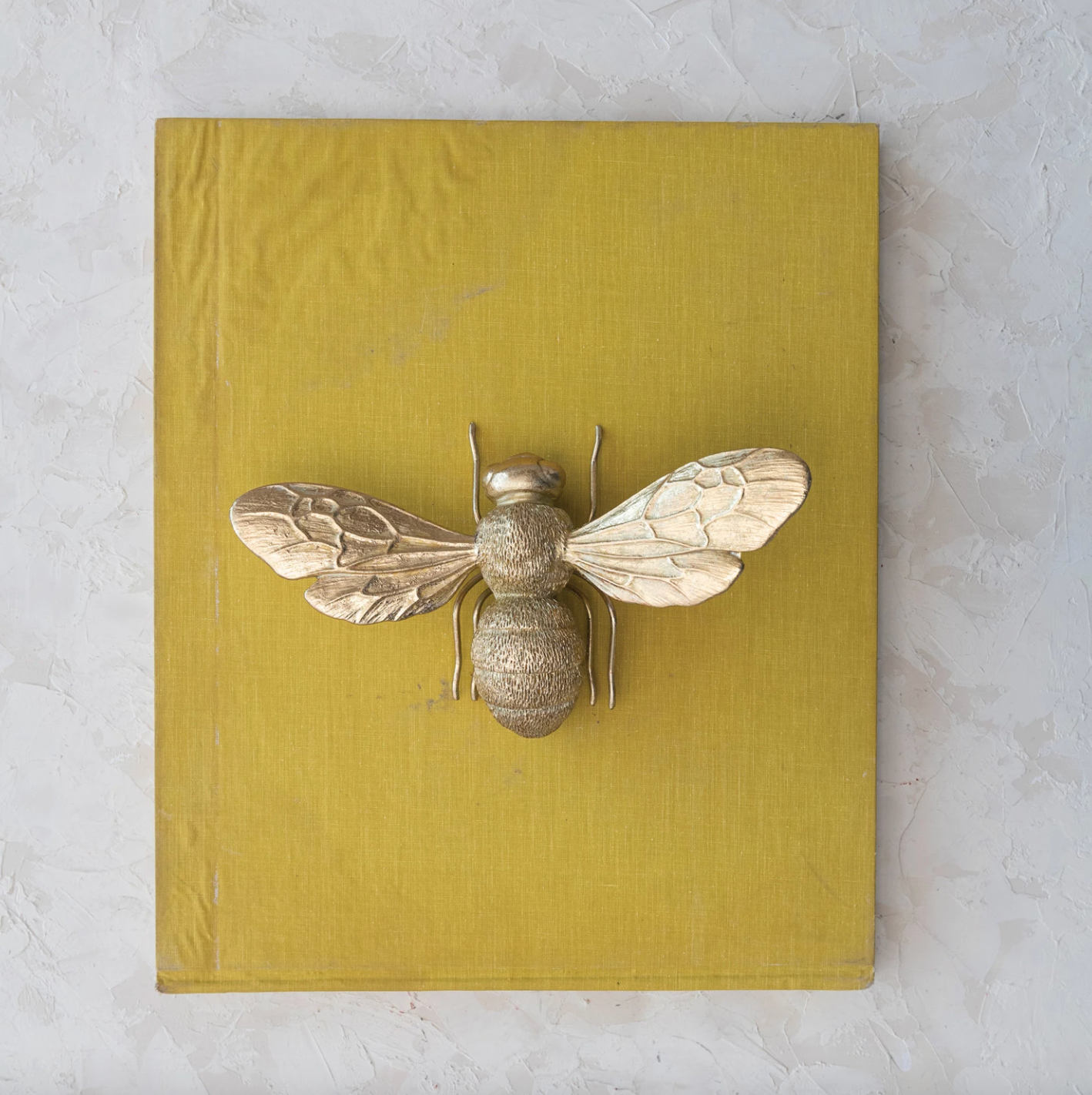 9"L x 3"W x 2"H Resin Bee, Gold Finish