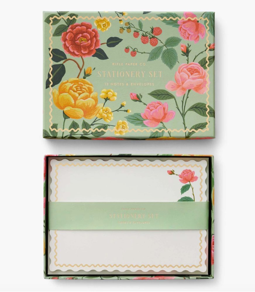 For thank-yous, greetings, and everything in between, our Roses Stationery Set includes 12 flat notes with gold foil accents and coordinating envelopes inside a decorative box.