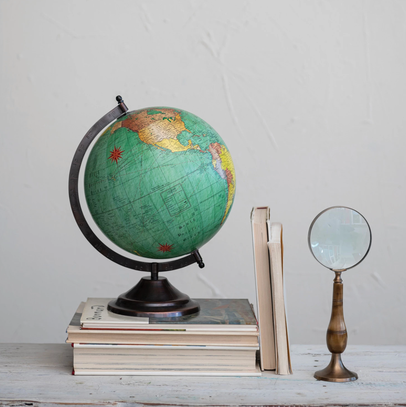 4"L x 2-3/4"W x 10-3/4"H Brass & Bone Magnifying Glass on Stand, Antique Finish