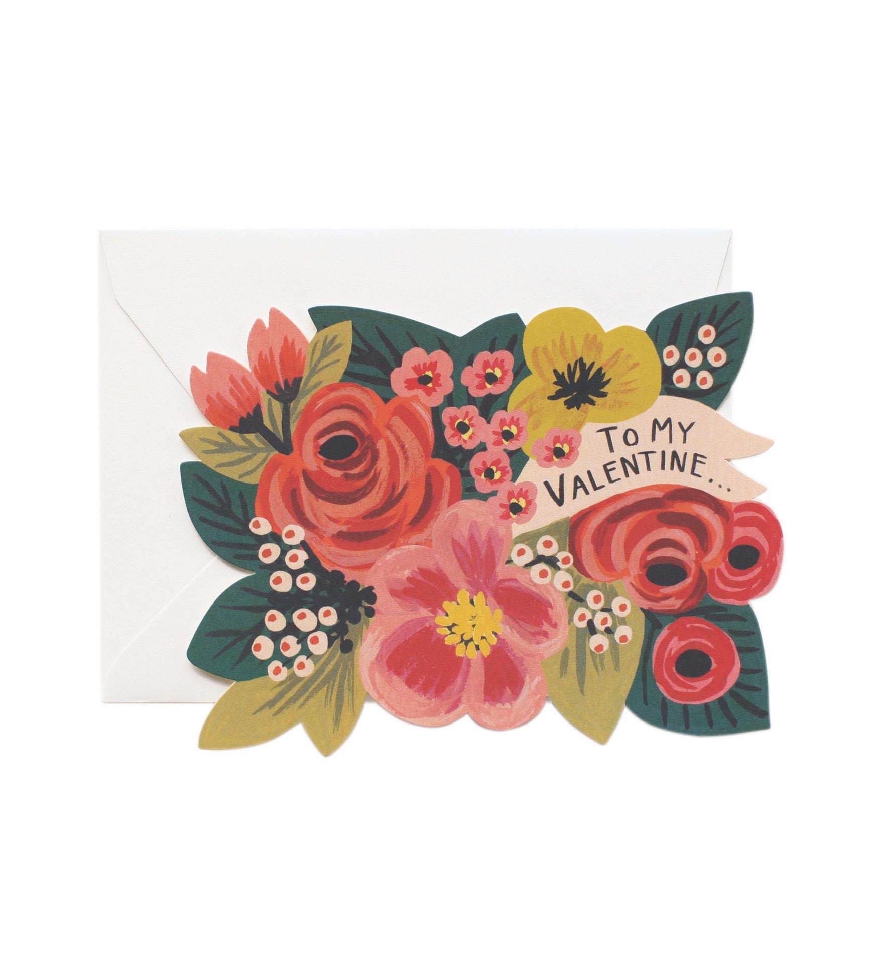 This is a single die cut card. This card features a blank back. Accompanied by a soft white envelope.