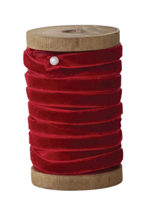 10 Yard 1/4"W Velvet Ribbon on Wood Spool, 3 Colors