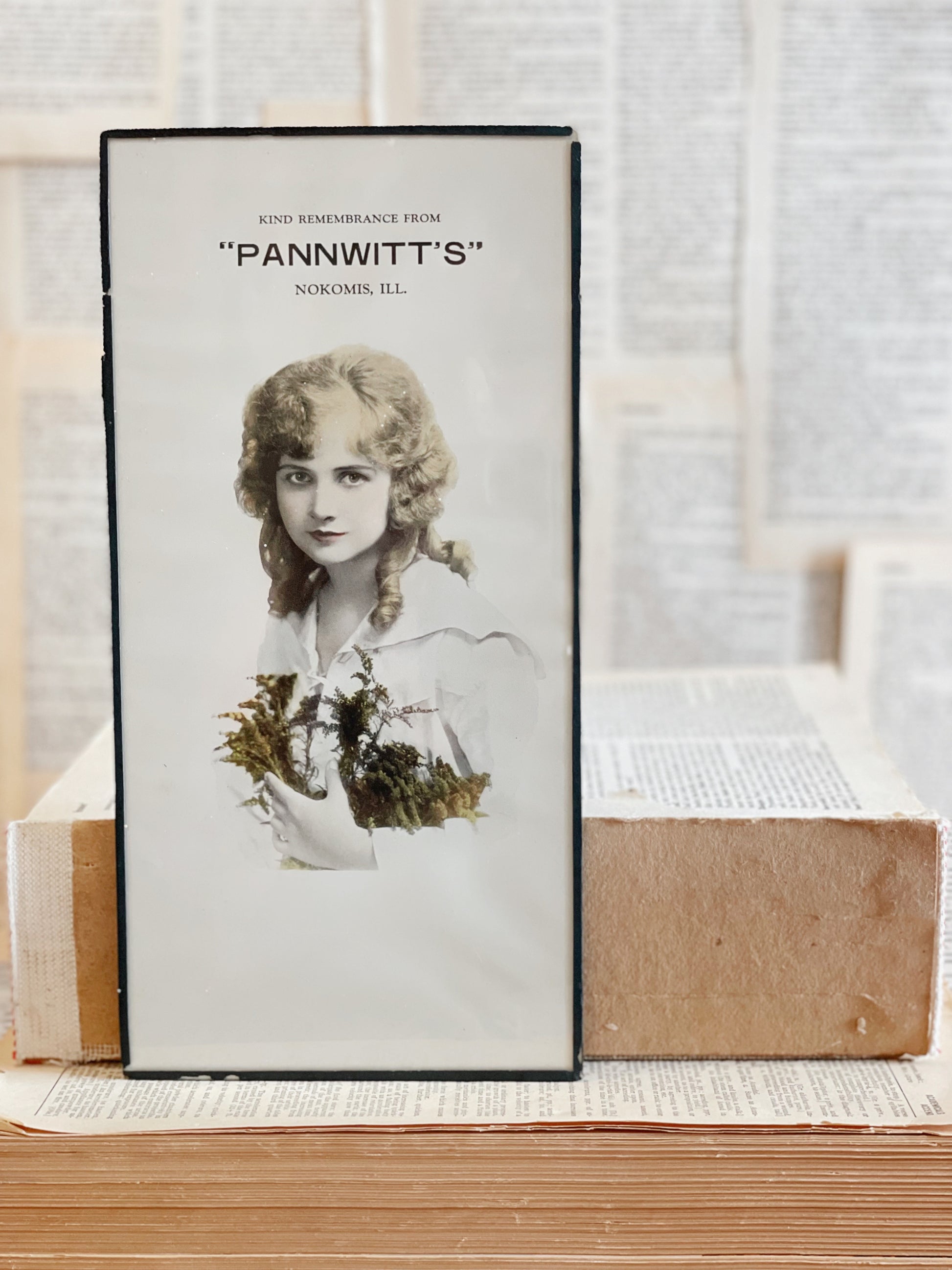 This is a vintage portrait done as an advertisement for Panwitts in Nokomis, IL. I believe this piece was made during or after one of the World Wars out of respect for American soldiers. The style and design of the portrait indicate WWI. This piece is encased in glass with a fine leaded frame. This is a wonderful piece of American History.
