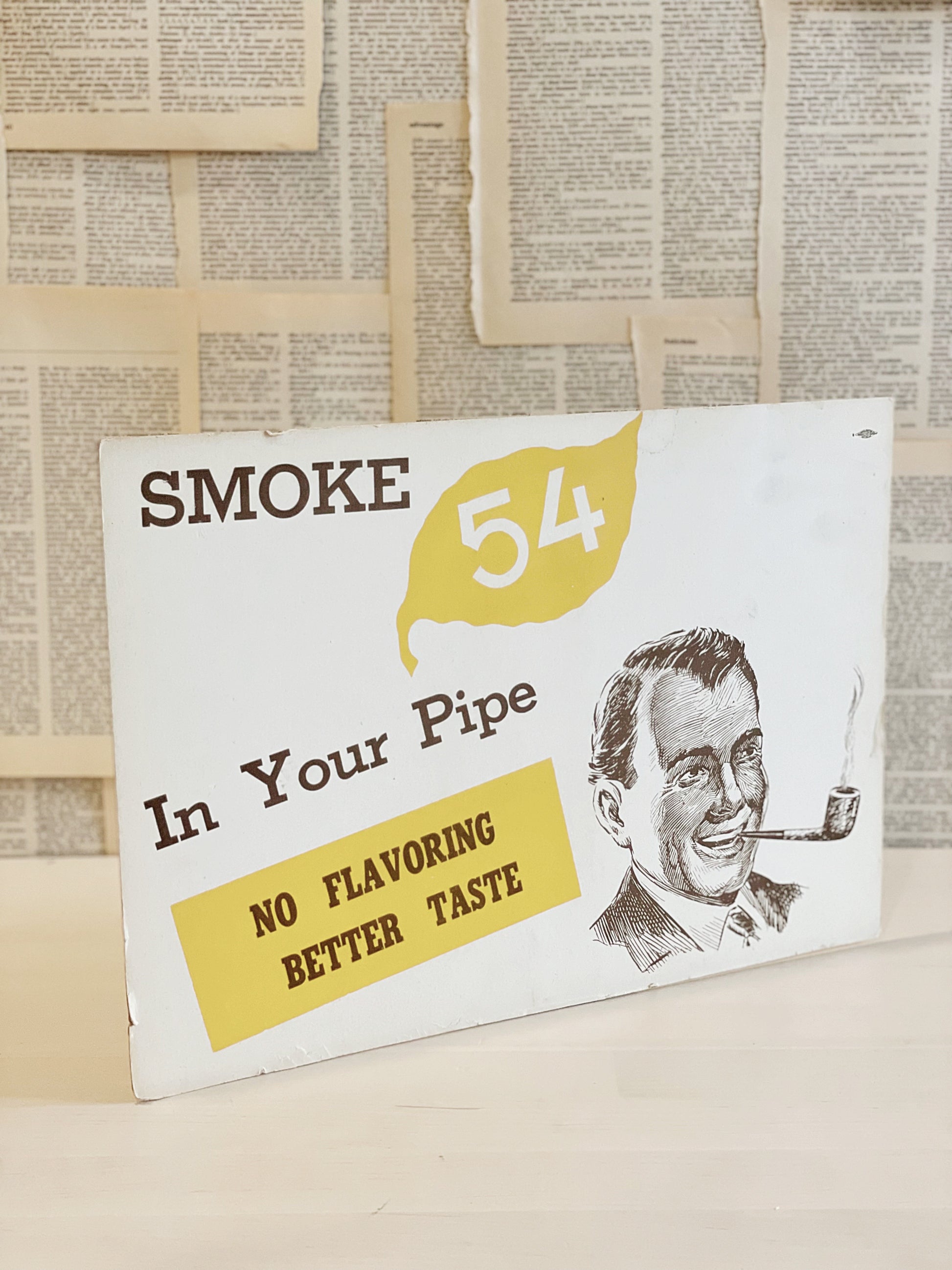 This vintage advertisement is in great condition. This would have been used as a counter advertisement in a general store. The sign sells “a better tasting” pipe tobacco. The cardboard stand on the back is in tact and working. This is true vintage- not a reproduction.