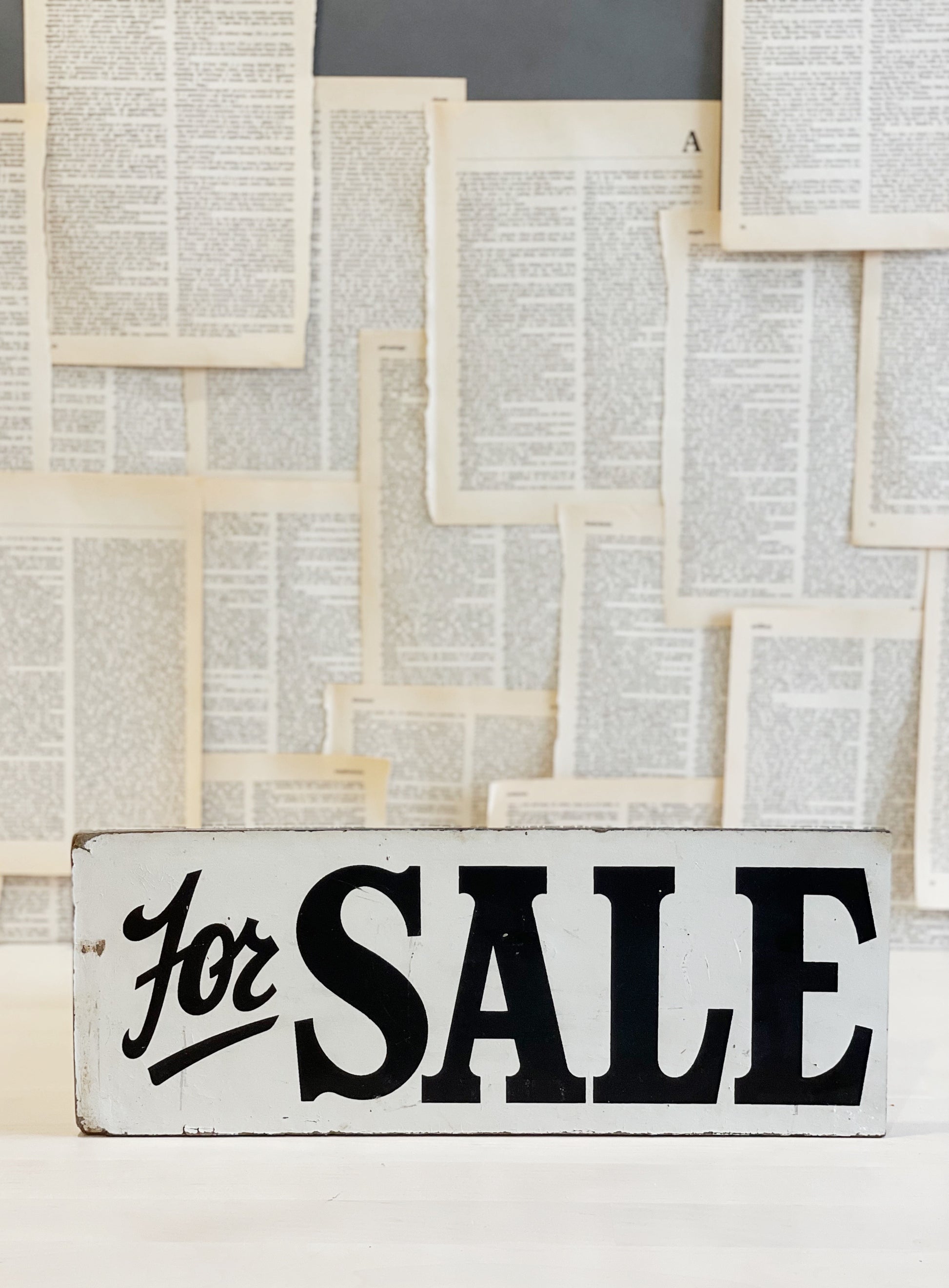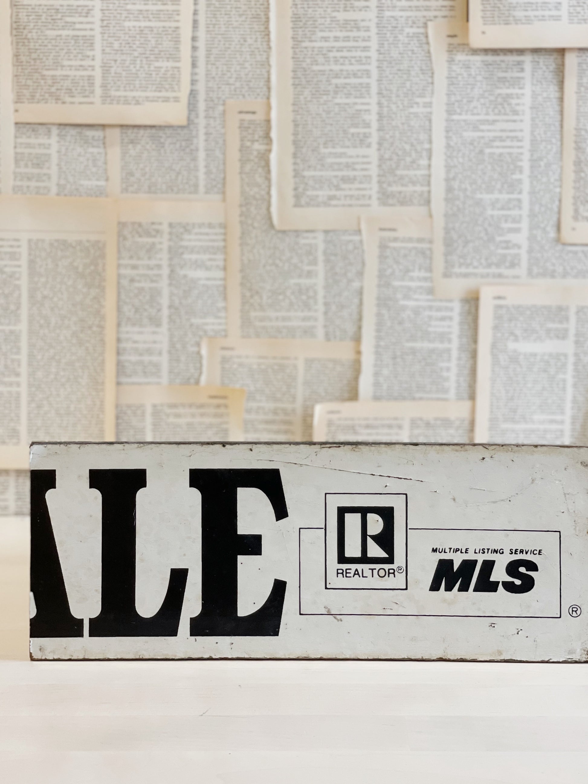 This is a vintage “for sale” sign, the back reveals the reality company that made the sign. This sign is one of a kind! The typography is wonderful and in a vintage style that is fun and eye catching!