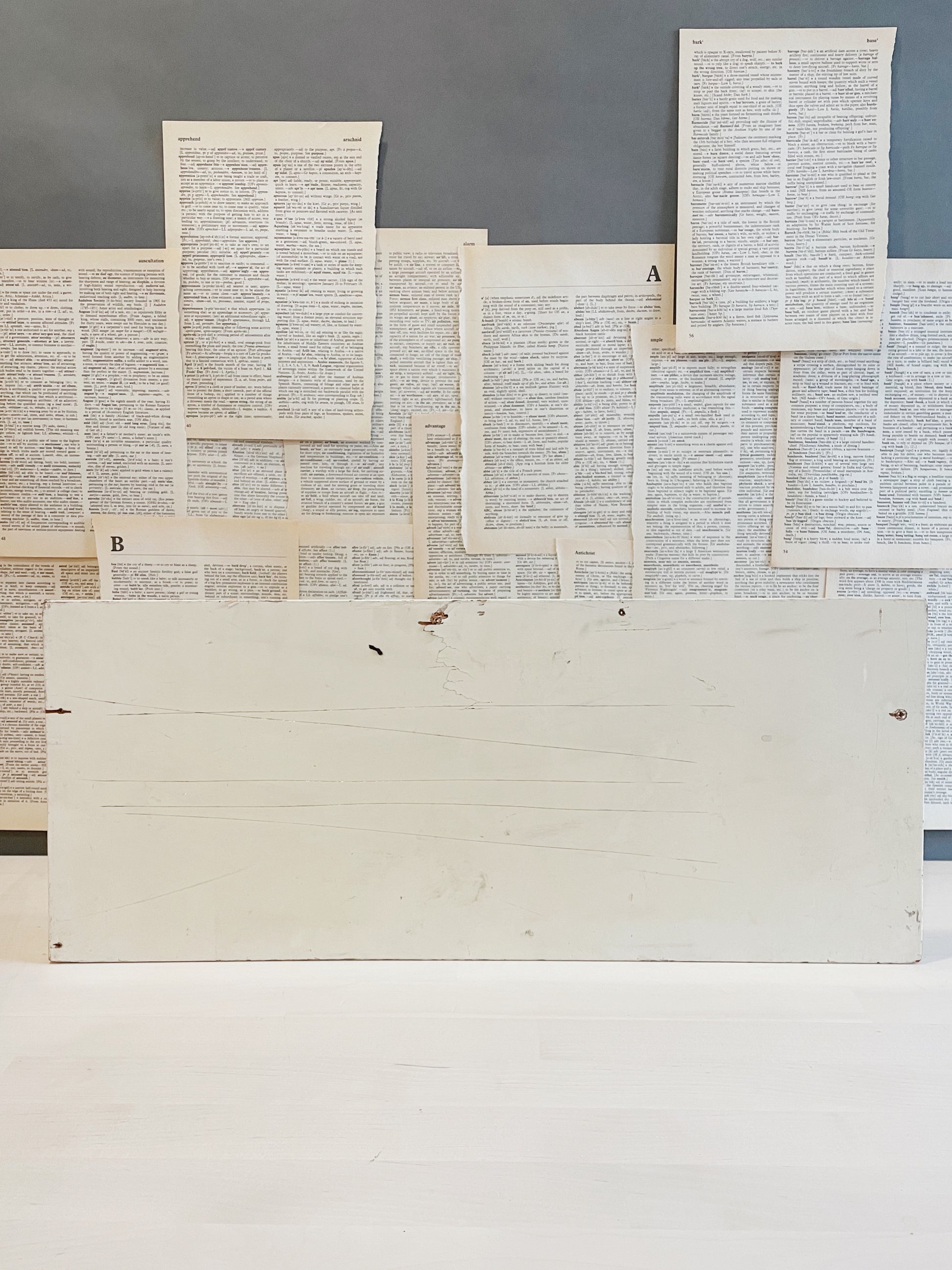 This vintage sign is very cool. The hand painted letters are so well done. The sign is on a thin piece of wood or chipboard. Back side is blank. This is a one of a kind piece!