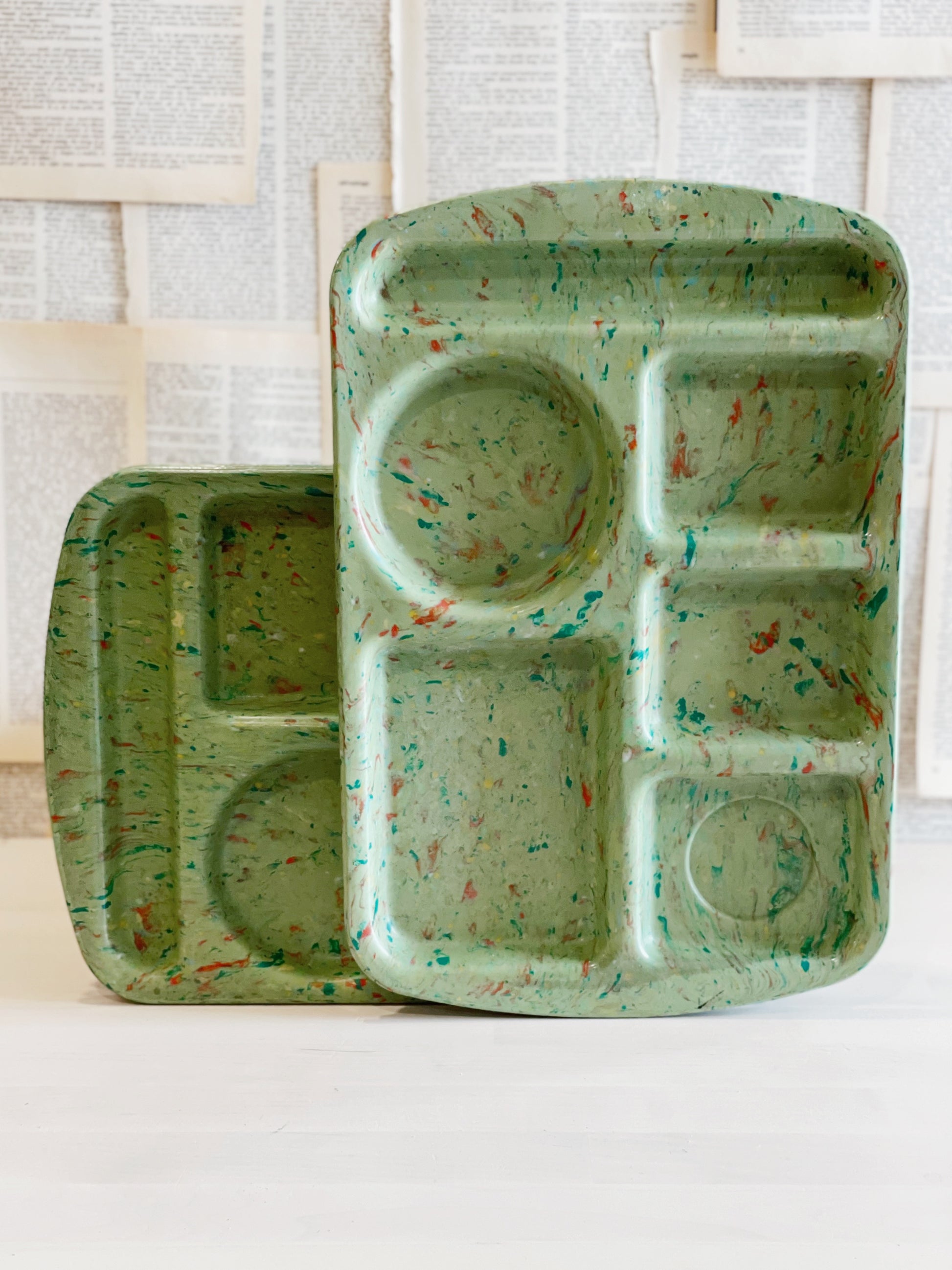 Vintage Prolon Ware Confetti Green Lunch Trays
