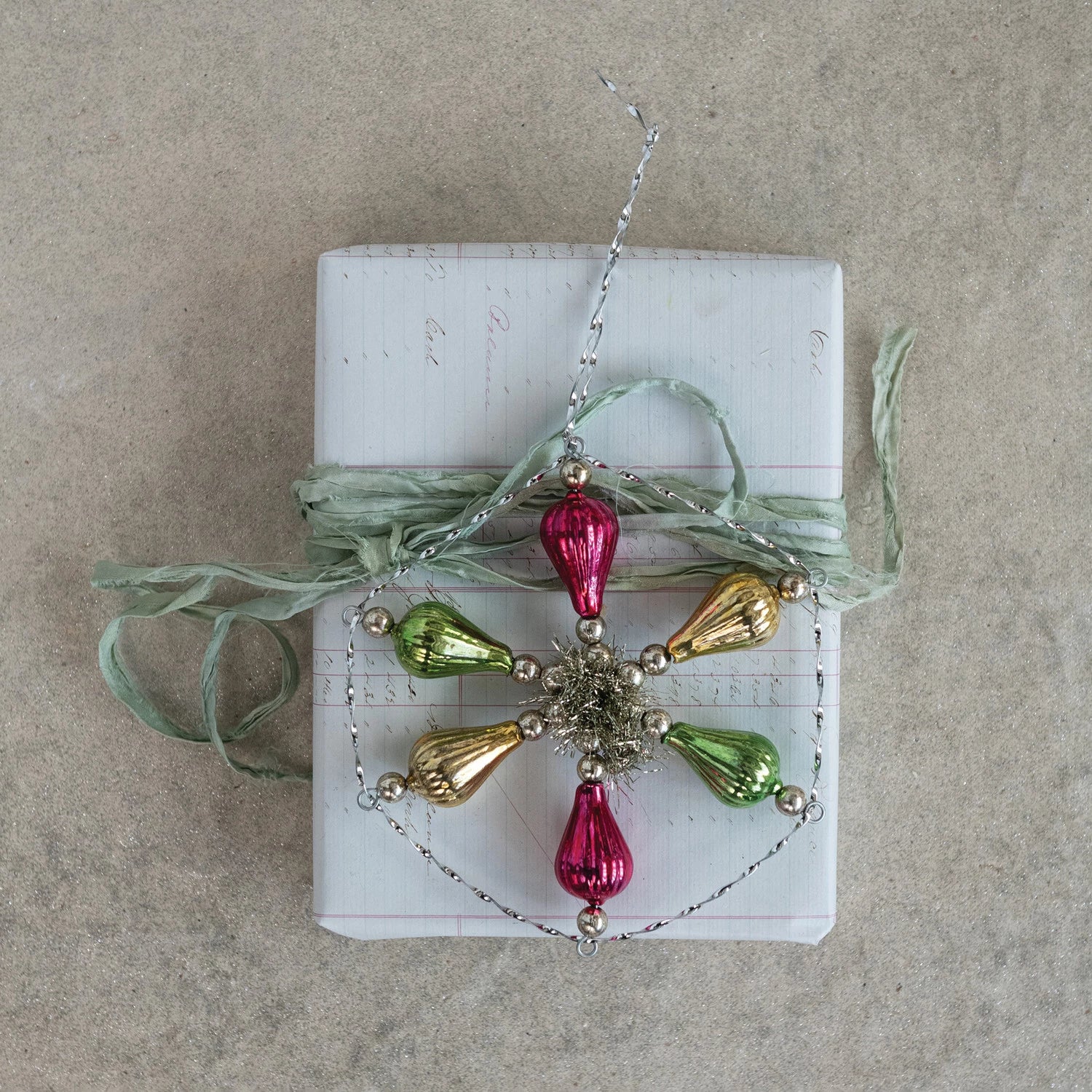6"W x 6"H Glass Snowflake Ornament w/ Tinsel, Multi Color