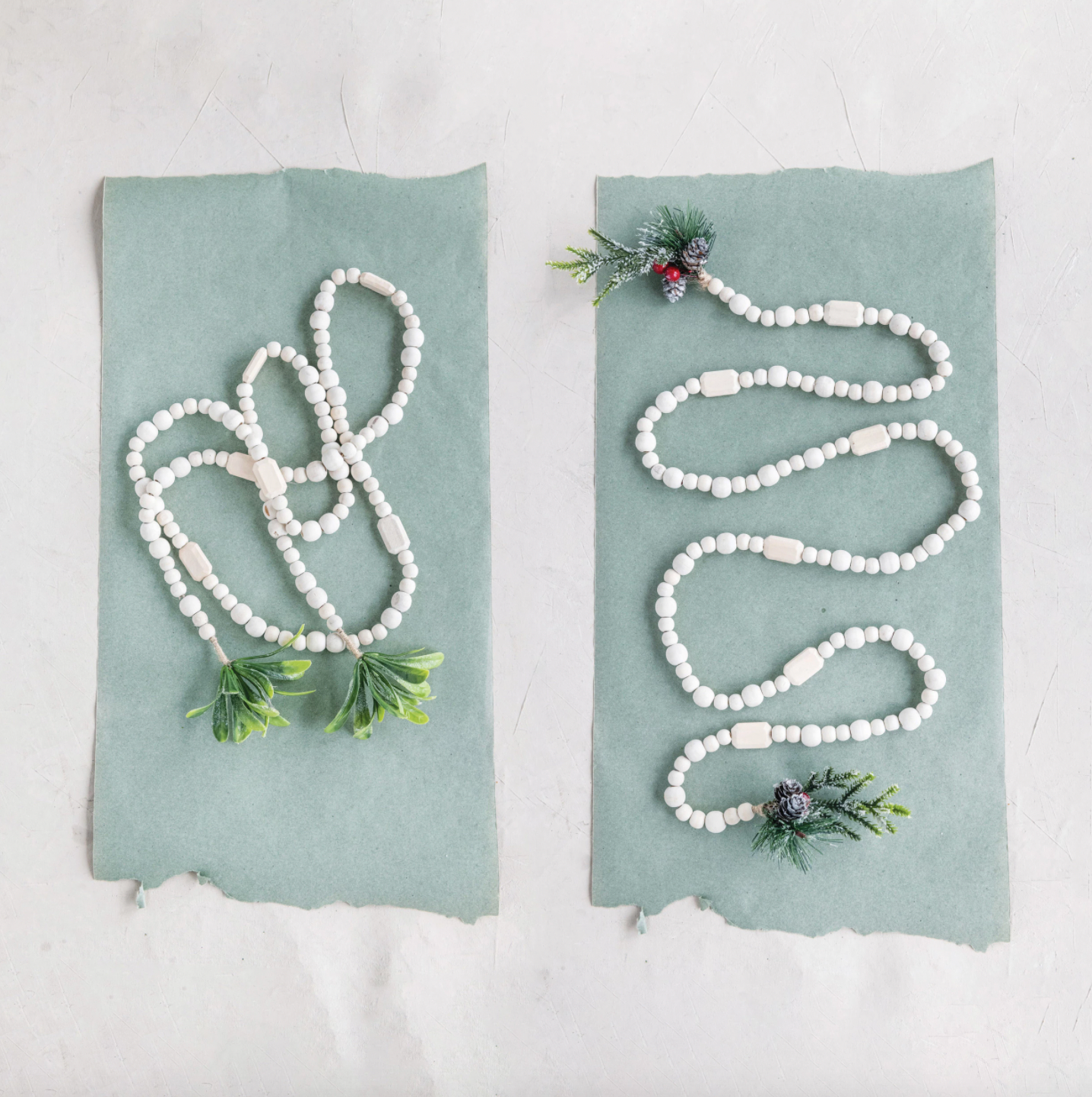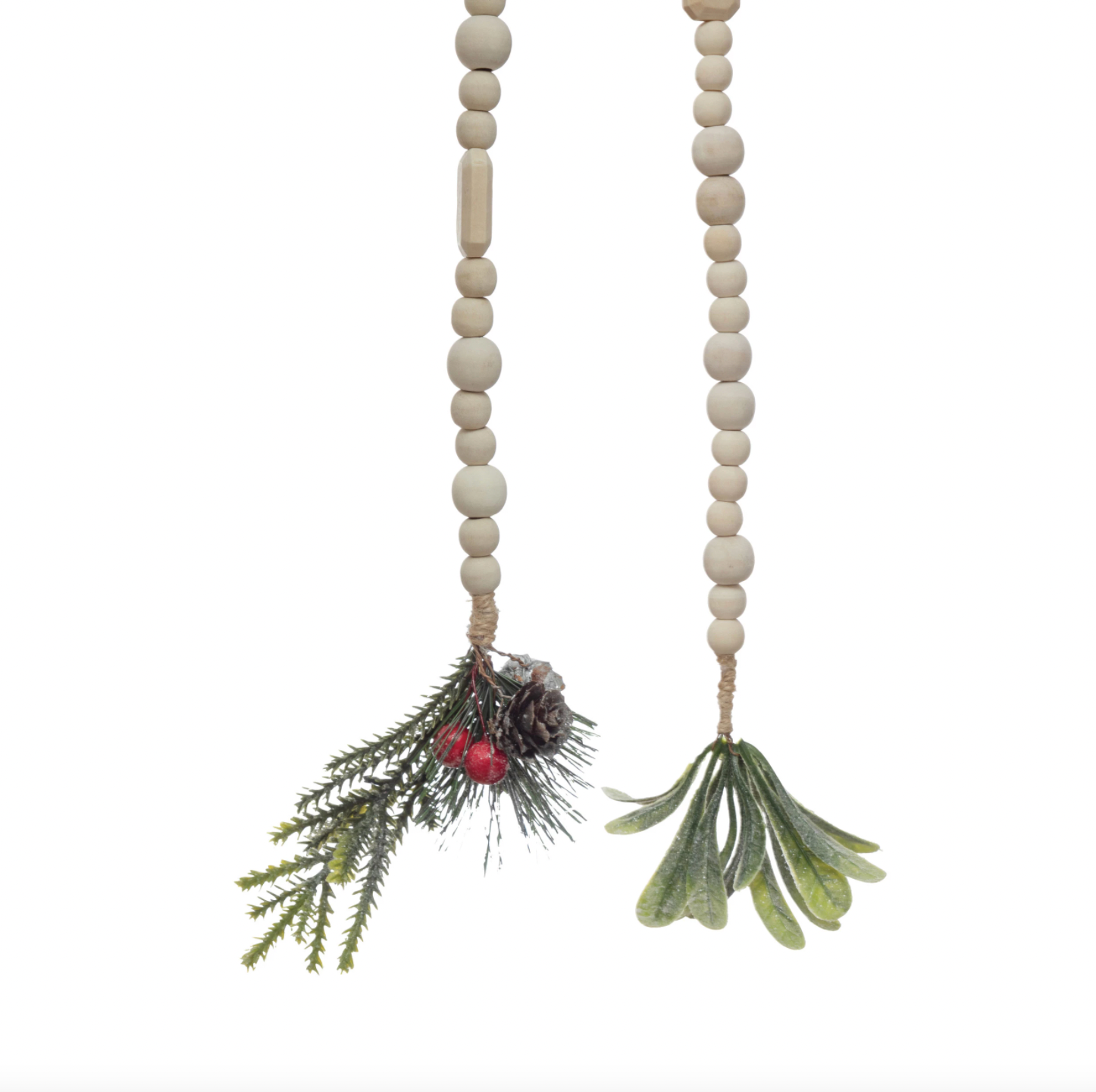 Wood Bead Garland with Greenery Tassel, 2 Styles